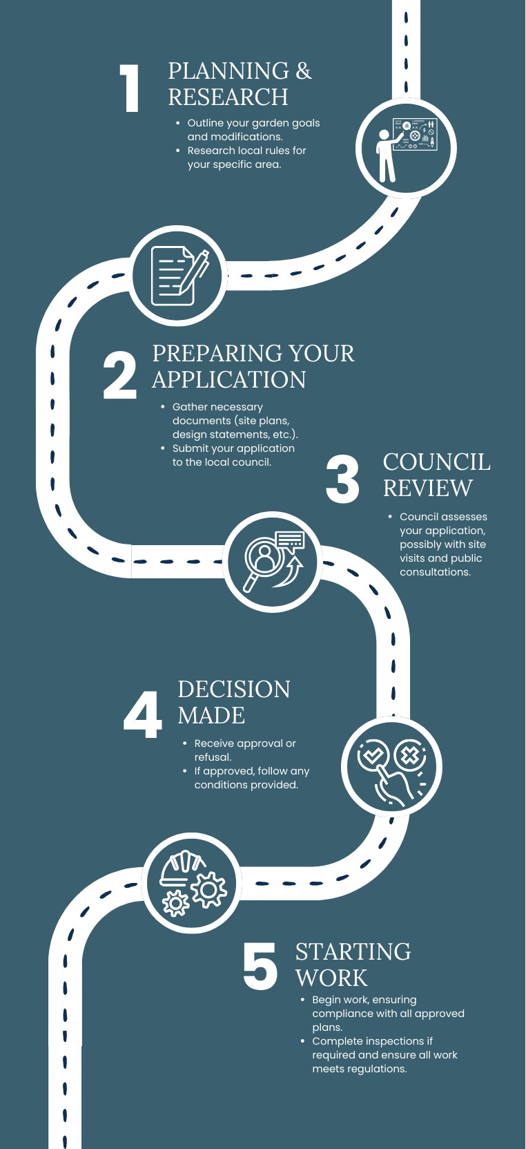Understanding and navigating the planning process is essential for any garden modification or landscaping project. Here's a breakdown of the planning process: